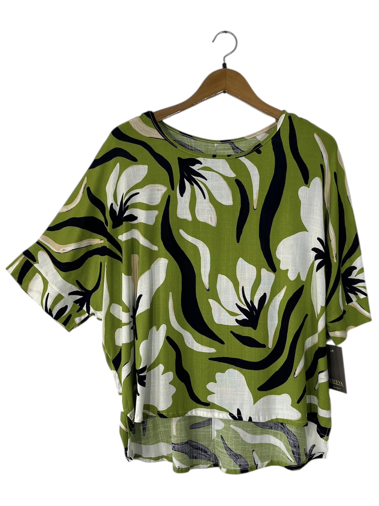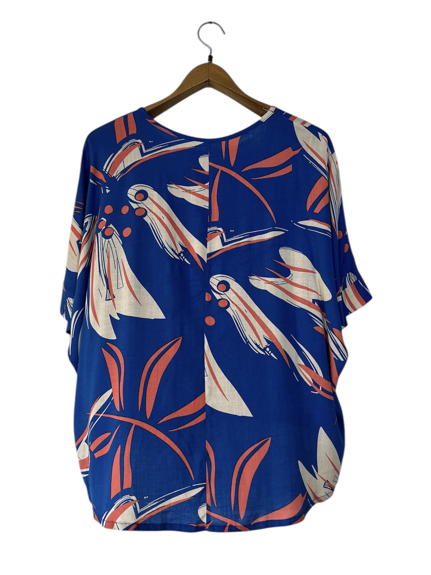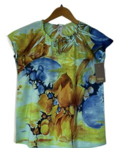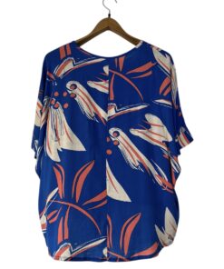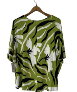 Blusón en viscosa/poliéster, un poco de spandex, y textura símil lino. Manga al codo, y la espalda es más larga que el delantero, con aberturas en los costados de 5 cm.