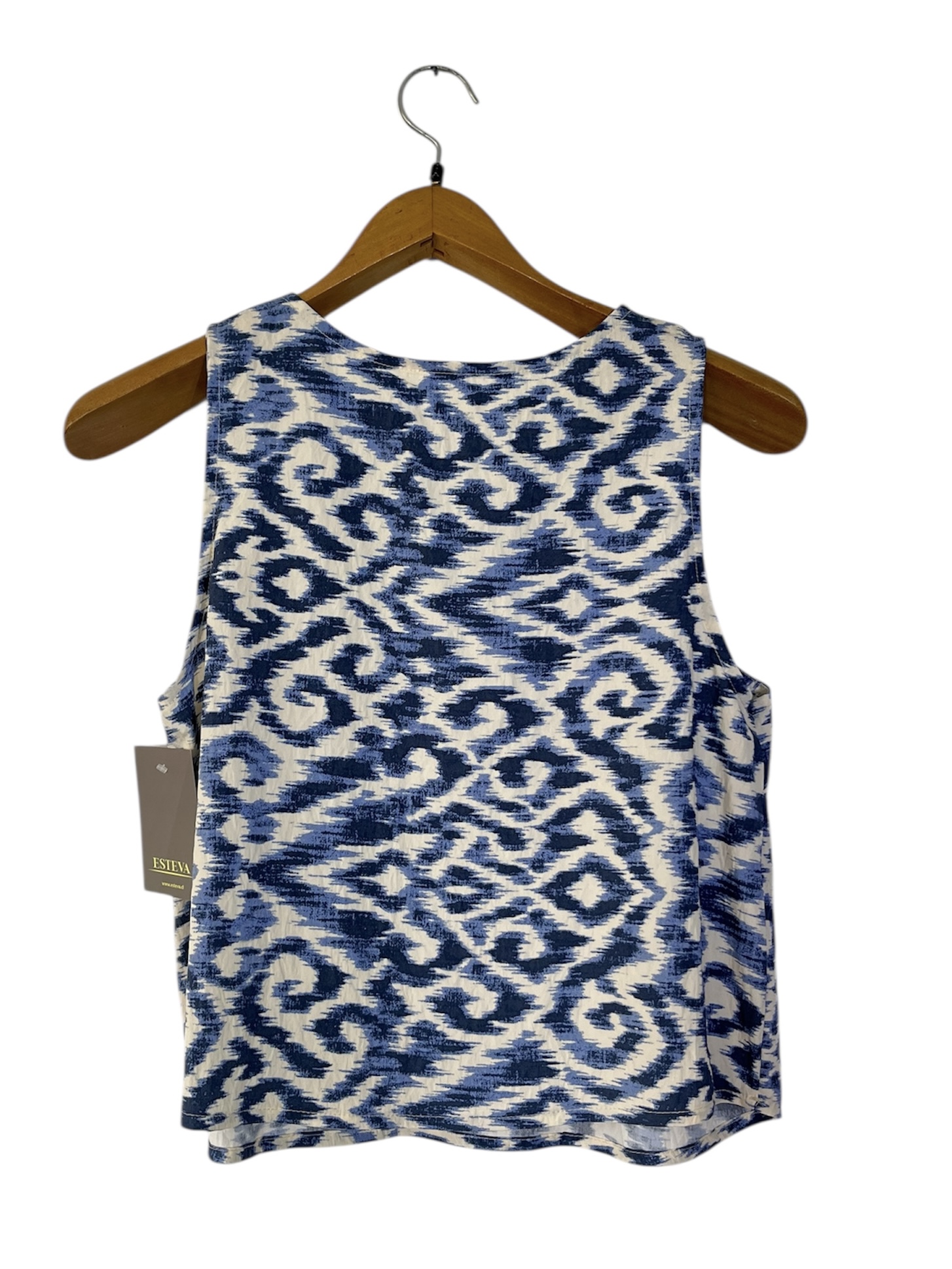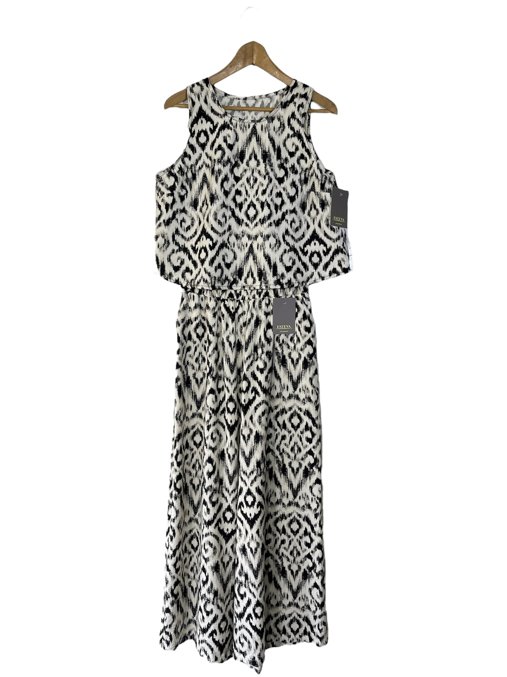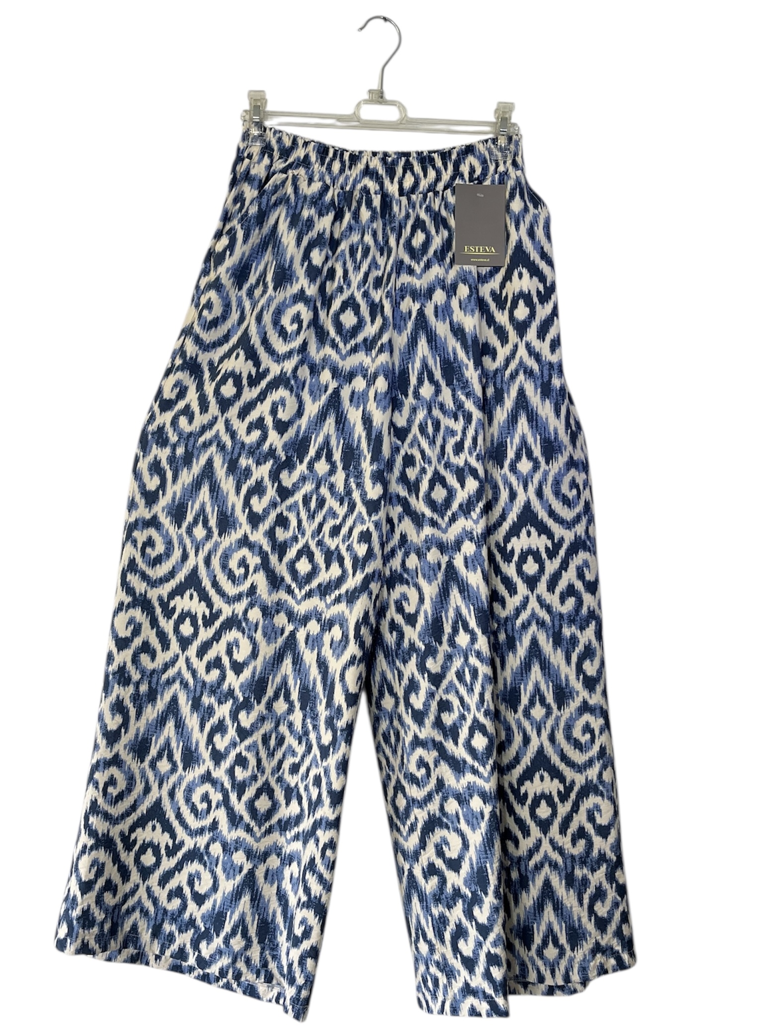 Conjunto de blusa sin mangas y palazzo en tela viscosa/poliéster (grosor medio). El palazzo tiene elástico en la cintura y bolsillos en los costados.