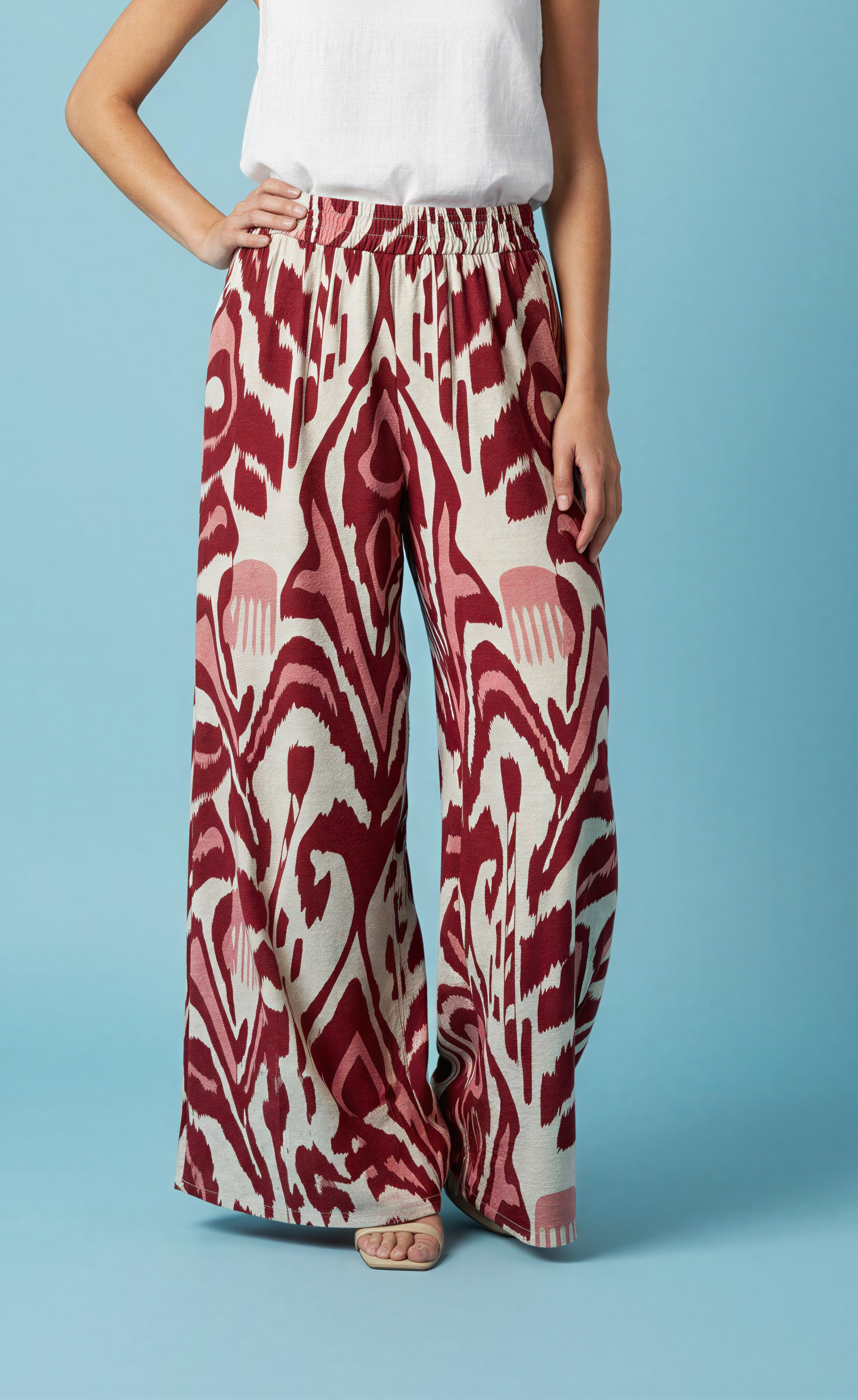 Palazzo amplio, con elástico en la cintura y bolsillos en los costados. Tela de viscosa/poliéster, grosor medio.